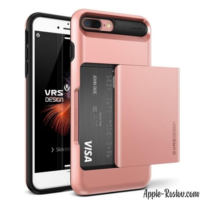- Чехол розового цвета с прорезиненной рамкой и отсеком для банковских карт