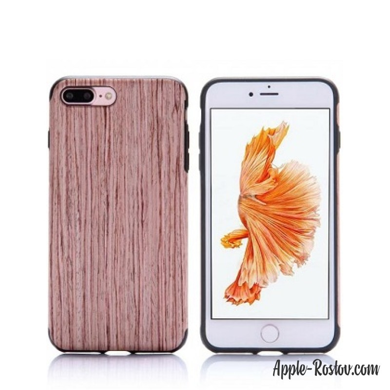 - Чехол с деревянной отделкой с розовым оттенком