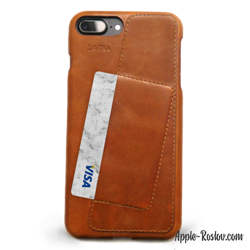 - Кожаный чехол коричневого цвета с кармашком для банковских карт